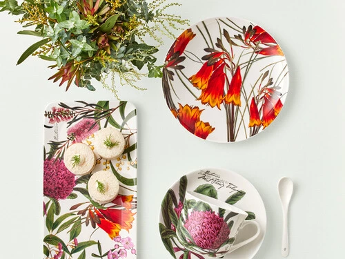 This rectangular platter from the Australian Botanics collection features a magnificent design of native flowers. Designed in collaboration with Royal Botanic Gardens Victoria, itβs a contemporary Australian take on classic floral tableware. This beautiful platter has a modern rectangular shape and the classic beauty of quality porcelain. Perfect for serving canapes, sweets and finger food, it will add a burst of colour to your next morning tea.