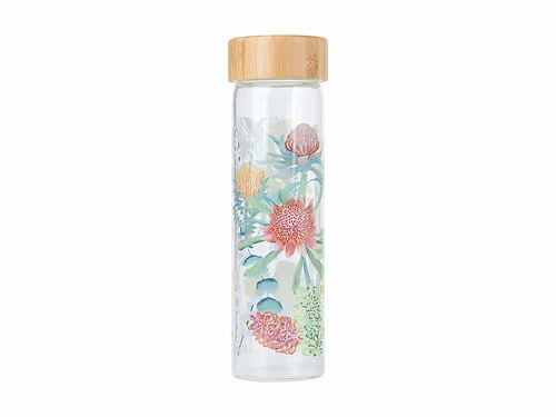 This glass water bottle from the Native Blooms collection captures the beauty of Australian flora. Designed in collaboration with Royal Botanic Gardens Victoria, it features a design based on original illustrations of our beloved native flowers. With a contemporary cylindrical shape and 550ml capacity, it’s a pretty everyday water bottle and a great option for picnics. Made from quality borosilicate glass, it’s sturdy as well as stylish.